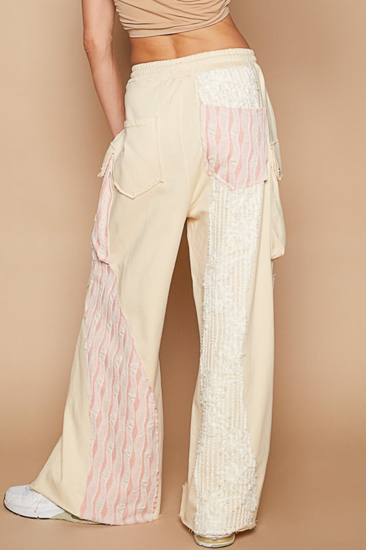 POL Crochet Contrast Drawstring Wide Leg Pants